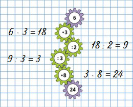 | (40 - 8) : 4 = 8 | 5 • 6 : 3 = 10 |