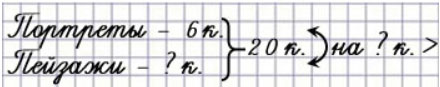 7. В зале музея выставили 20 картин, из них 6 портретов, остальные - пейзажи. На сколько больше выставили пейзажей, чем портретов?