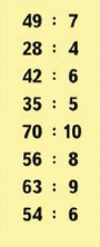 | 14 + 35 : 7 = 19 | 9 • 2 : 3 = 6 |