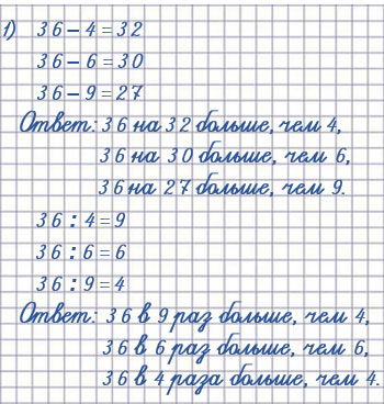 20. 1) На сколько 36 больше, чем 4; 6; 9?