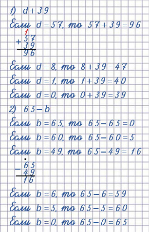 21. 1) Найди значение суммы d + 39, если d = 57, d = 8, d = 1 и d = 0.
