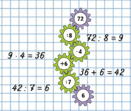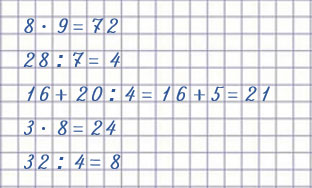 | 72 : 8 = 9 | 8 • 4 = 32 | 9 • 4 = 32 |