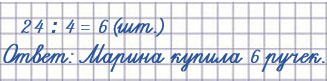 Марина купила 6 одинаковых ручек и заплатила за них 24 рубля. Сколько стоила одна ручка?