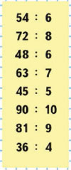 | 72 : 8 • 3 | 54 - 24 : 3 |