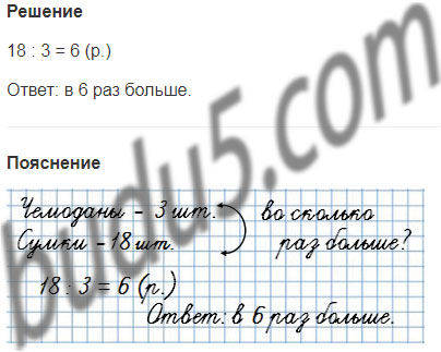 75. В витрине магазина было 18 сумок и 3 чемодана. Во сколько раз больше было сумок, чем чемоданов, в этой витрине?