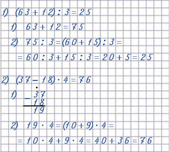 1) (63 + 12) : 3 = 63 : 3 + 12 : 3 =