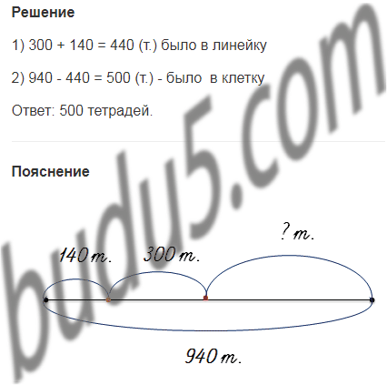 21. У продавца было 940 тетрадей в клетку и в линейку. Когда он продал 140 тетрадей в линейку, у него осталось ещё 300 тетрадей в линейку. Сколько тетрадей в клетку было у продавца?