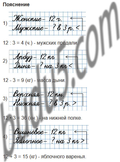 1) За день в магазине продали 12 женских часов, а мужских в 3 раза меньше. Сколько мужских часов продали в этот день?