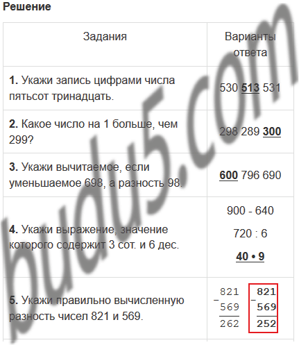 | 5. Укажи правильно вычисленную разность чисел 821 и 569. |