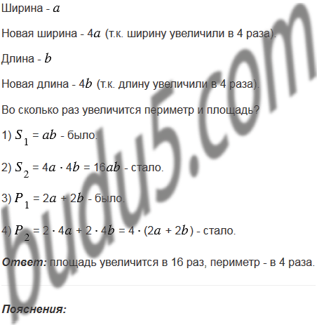 Во сколько раз увеличится периметр и площадь прямоугольника, если каждую его сторону увеличить в 4 раза?