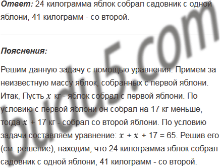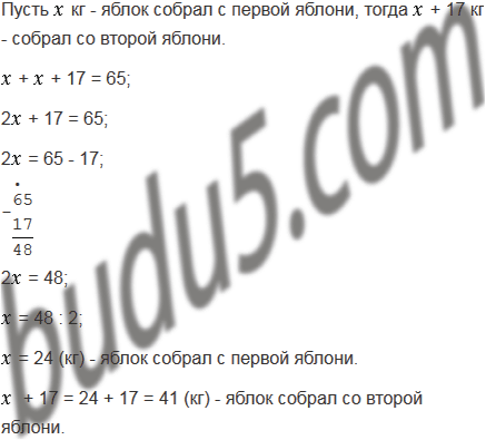 С двух яблонь садовник собрал 65 кг яблок, причём с одной яблони он собрал на 17 кг меньше, чем со второй. Сколько килограммов яблок он собрал с каждой яблони?