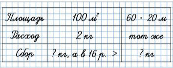На 100 м2 расходуют 2 кг семян. А урожай - в 16 раз больше, чем расход при посеве. Вычислим, сколько гороха можно собрать со 100 м2:
