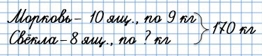В детский сад привезли 170 кг овощей, из них 90 кг - моркови. Вычислим, сколько килограммов свёклы привезли: