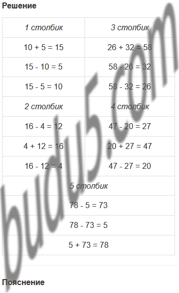 | 15 - 5 | 16 - 12 | 58 - 32 | 47 - 27 | 5 + 73 |