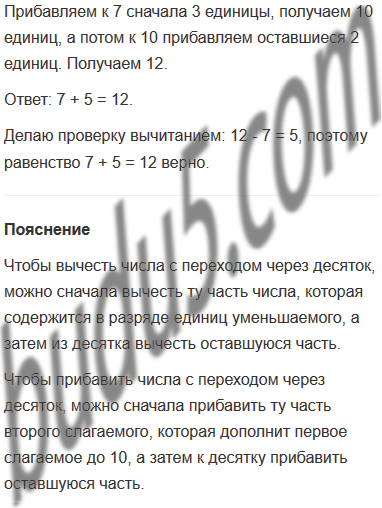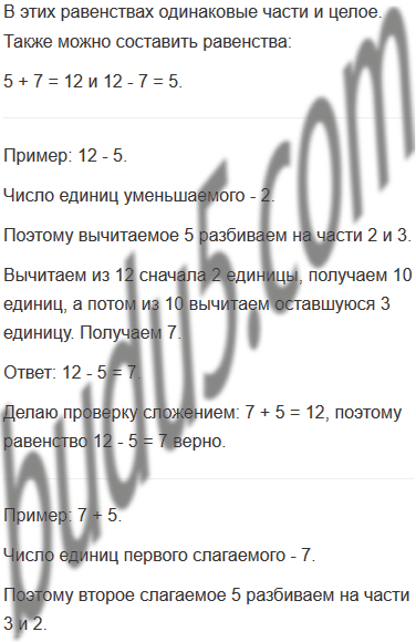 Задание № 5. Объясни по рисунку способ сложения и вычитания с переходом через десяток по частям. Запиши решение примеров в тетради.