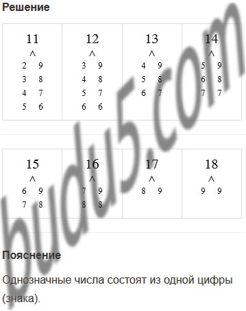 Задание № 7. Составь "домики" чисел 11, 12, 13, 14, 15, 16, 17 и 18 из однозначных слагаемых.
