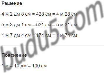 | 4 м 2 дм 8 см | 5 м 3 дм 1 см | 1 м 7 дм 4 см |