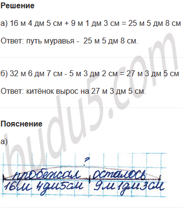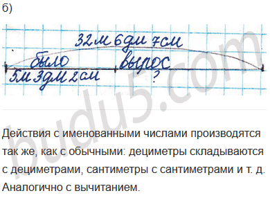 б) Длина новорождённого китёнка была 5 м 3 дм 2 см, а когда он вырос - стала 32 м 6 дм 7 см. На сколько он вырос?
