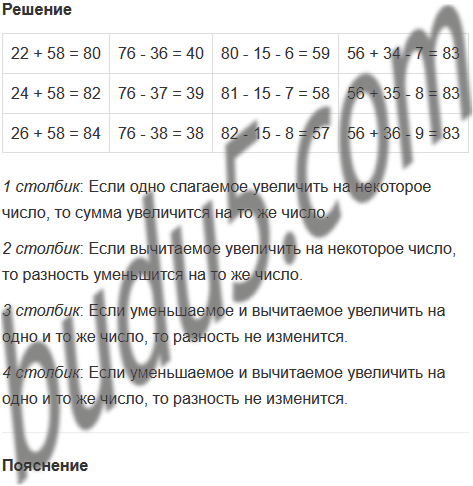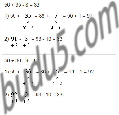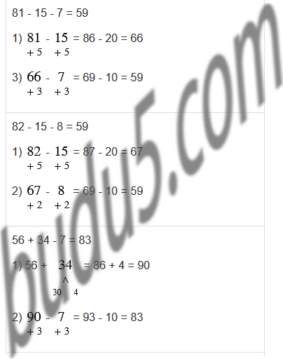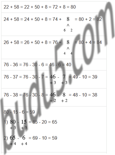 | 22 + 58 | 76 - 36 | 80 - 15 - 6 | 56 + 34 - 7 |