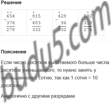 Повтори алгоритм письменного вычитания трёхзначных чисел.