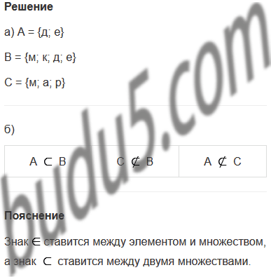 б) Найди подмножества. Сделай записи, вставляя знаки
