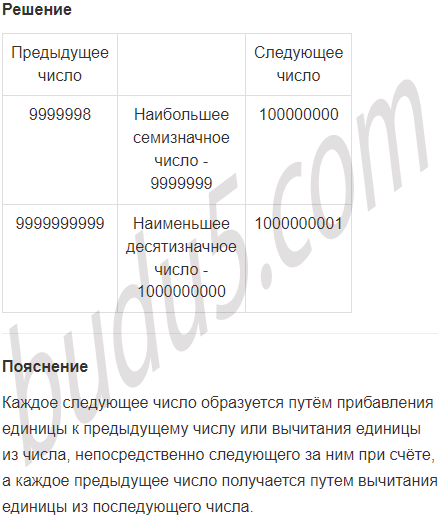 Задание № 9. Запиши и прочитай наибольшее семизначное число и наименьшее десятизначное число. Какие числа им предшествуют? Какие числа за ними следуют?