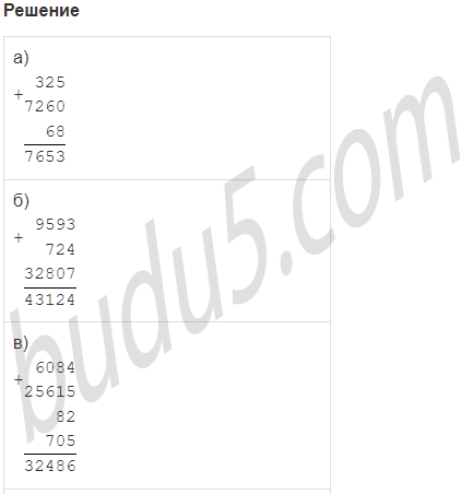 | а) 325 + 7260 + 68 | в) 6084 + 25615 + 82 + 705 |