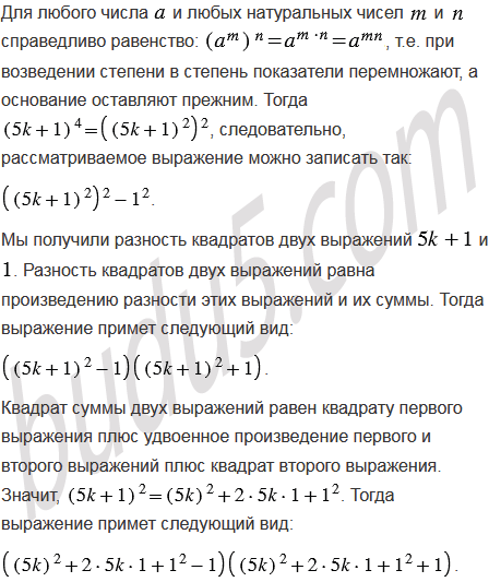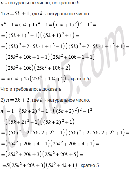 Докажите, что при любом натуральном значении , не кратном 5, значение выражения делится нацело на 5.