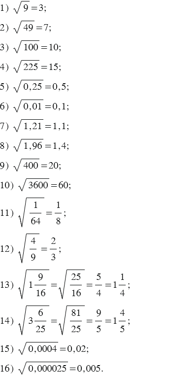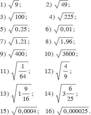 Найдите значение арифметического квадратного корня: