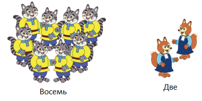 Например, решим задачу: В магазине было 8 котят и 2 лисички. Во сколько раз котят было больше, чем лисичек? Во сколько раз лисичек было меньше, чем котят?