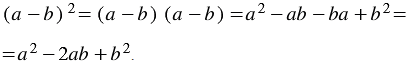 Полученные формулы относят к формулам сокращенного умножения, т.к. с помощью этих формул можно, не используя правило умножения многочлена на многочлен, проще возводить в квадрат сумму либо разность любых двух выражений.